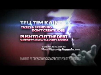 An ad from Crossroads GPS continues the group’s quest to distort Virginia Senate candidate Tim Kaine’s record as the state’s governor. The truth is that amid a highly political fight over how to fix Virginia’s transportation issues, Kaine proposed to raise revenue while Republicans wanted to borrow more money. When the recession hit, Virginia’s revenues dropped off, but Kaine cut billions and finished each two-year budget cycle with the books balanced. And Kaine didn’t, as the ad states, pledge “no new taxes” – he pledged to keep tax increases designed to fund transportation upgrades from being used to plug other budgetary holes.